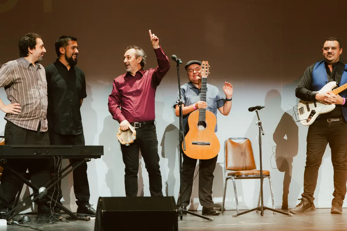 El Teatro Municipal de Chillán vibró la noche del martes 13 con cuecas e incluso un zapateo improvisado del público. Daniel Muñoz, acompañado de su grupo Los Marujos, fue uno de los puntos altos de la inauguración de la séptima edición del Festival de Cine Nacional de Ñuble. Frente a más de 1200 personas, presentó el repertorio popular que lleva años cultivando en fondas y peñas, incluyendo canciones del Tío Roberto Parra.
