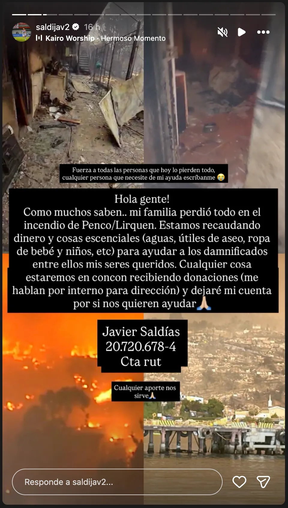Otro que está lamentando esta tragedia es el lateral de Unión La Calera, Javier Saldías, quien vivía en una de las zonas más devastadas por el fuego.