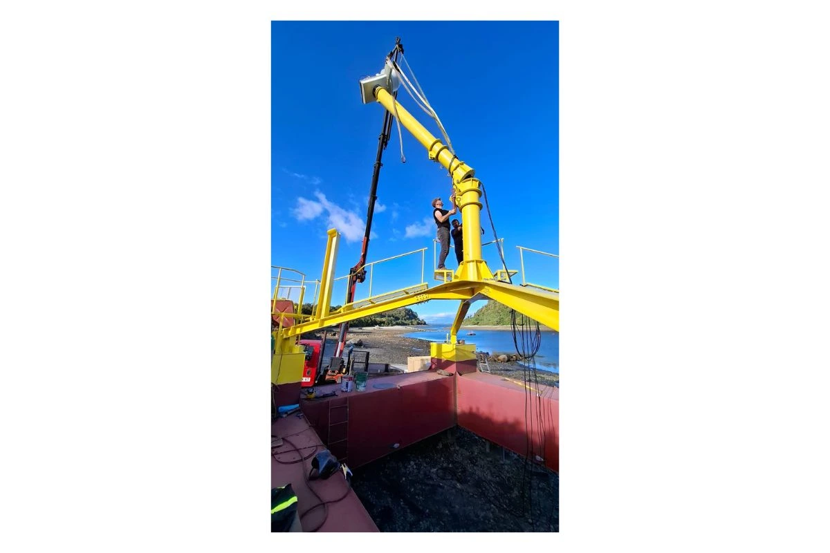 El investigador también subrayó la importancia de que la tecnología sea construible e instalable con capacidades locales, una condición que el equipo consideró desde el diseño inicial. Para su ejecución colaboraron las empresas Green Aqua, Patag@n, Okeanos, Salmoboats y Green Balance, que participaron en el fondeo, la construcción de la plataforma, el sistema eléctrico y el anclaje en el mar.