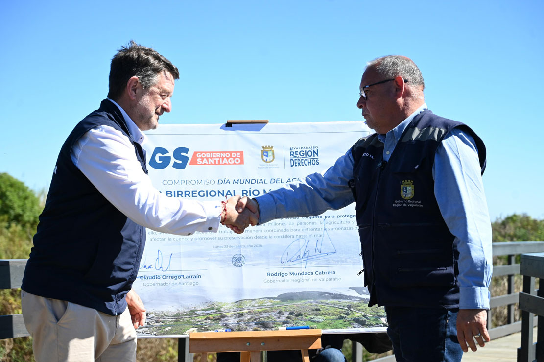 Este lunes y en la desembocadura del río Maipo, los Gobiernos Regionales de Santiago y Valparaíso suscribieron un acuerdo birregional histórico para la protección y regeneración integral de toda la cuenca del principal afluente de la Región Metropolitana.