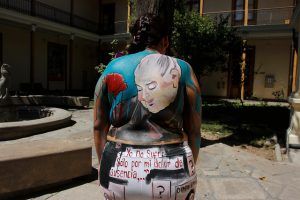 Diez mujeres fueron las que tuvieron la disposición para que sus cuerpos fueran los lienzos en donde se retratarían las 10 demandas centrales de esta movilización feminista, para luego marchar por las calles de la capital para llamar a las manifestaciones y presentar el trabajo realizado. En el Museo de la Memoria, la activista por los derechos humanos, Beatriz Bataszew habló sobre la violencia político sexual que viven las mujeres y que vivieron en carne propia en dictadura, además de hacer un llamado a participar de la huelga.
