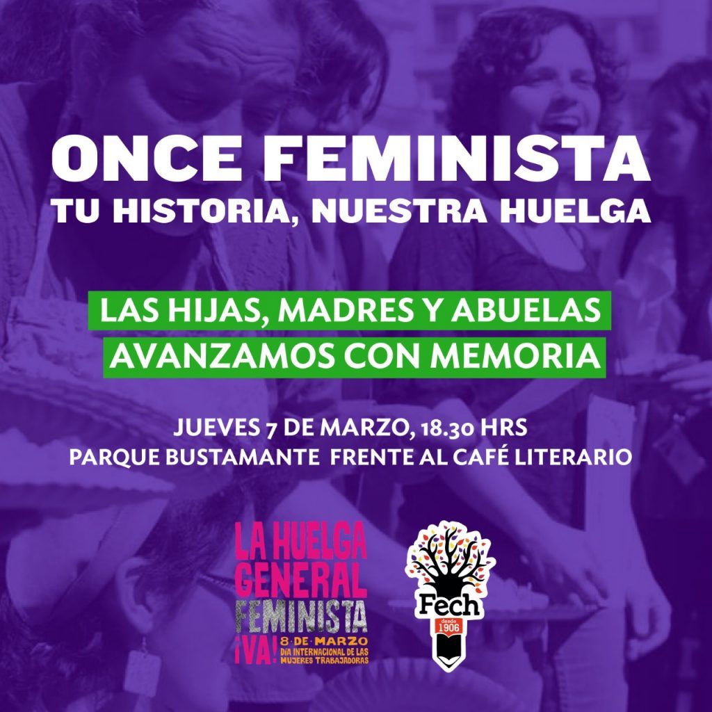 "Las abuelas, las madres, las hijas, las nietas nos juntamos a compartir experiencias, cariño, y aprendizaje para construir la vida que merecemos. Te invitamos este jueves 7 de marzo a las 18:30 horas a compartir la once feminista frente al café literario, sector plaza Italia. Ven con tus amigas, tías, abuelas, madres o hijas. Tendremos té, café, ricas marraquetas y toneladas de sororidad para compartir", consignaron las organizadoras.